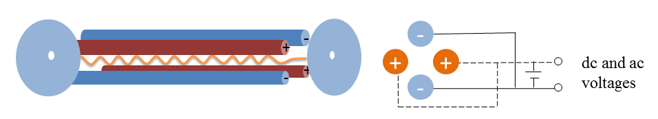 通过为离子创造一个势阱,线性离子陷阱可以用作质量过滤器或陷阱。线性离子阱使用一组四极杆,通过二维射频(RF)场从径向限制离子。而静电势可以轴向限制离子。通过施加适当的射频和直流电压,它们被限制,最终位置保持在离子阱的中心区域内。调节射频电压,对陷阱施加多频率共振喷射波形,以消除除所需离子外的所有离子,为随后的碎片化和质量分析做准备。