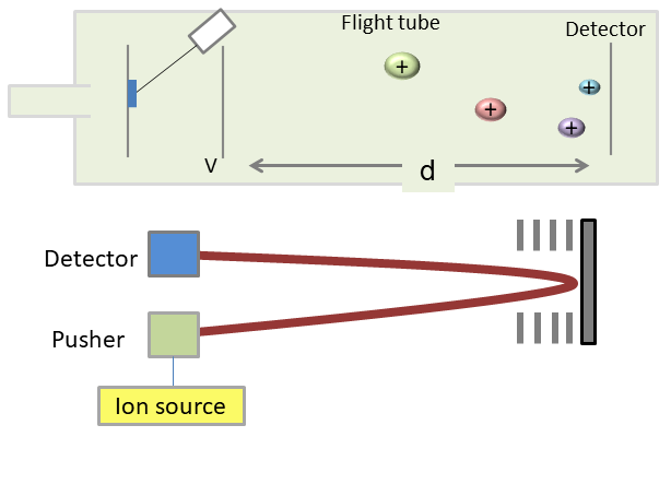 飞行分析仪的时间包括脉冲离子源,加速电网,无场飞行管和检测器。可以根据公式计算离子通过电位电压加速的特定物质充电的飞行时间,以达到距离处的检测器。
